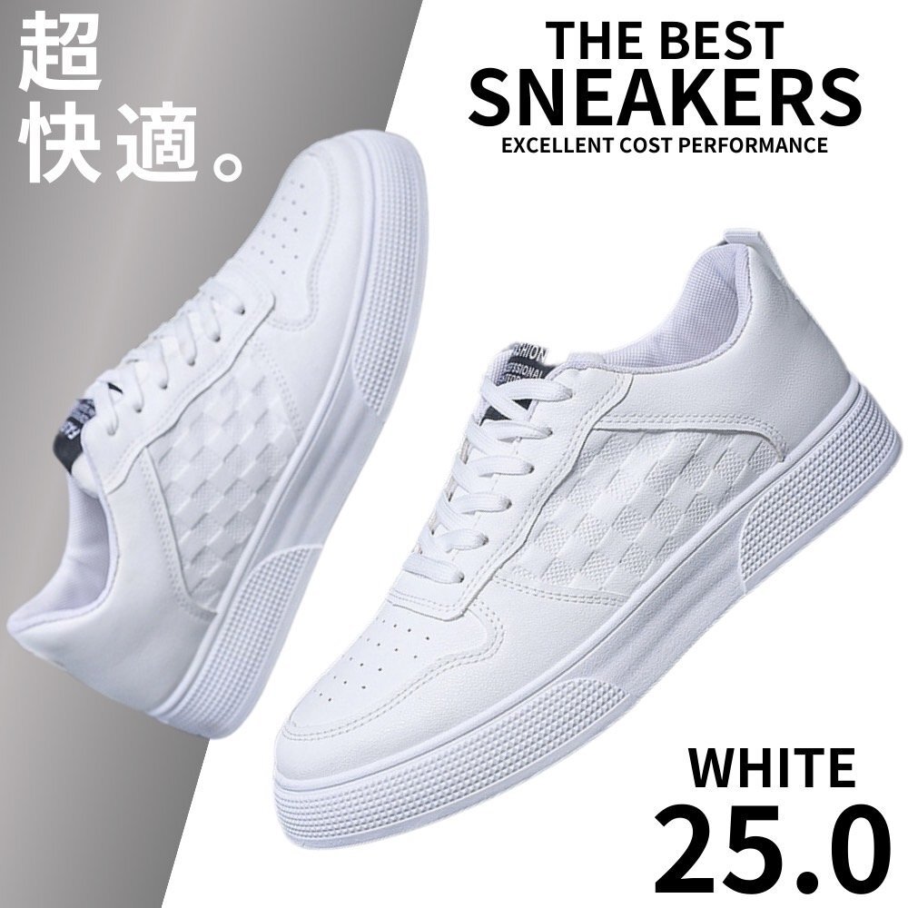 > スニーカー メンズ カジュアル シューズ 防水 ワークシューズ おしゃれ ランニング ウォーキング 通気性 ホワイト 25.0