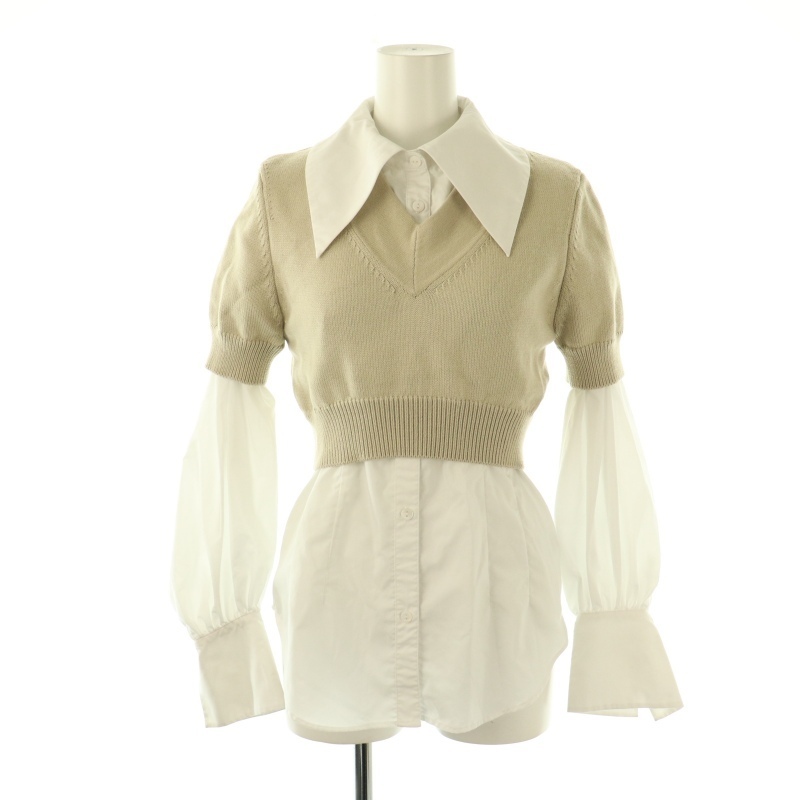 > スナイデル SNIDEL 二点セット ショートシャツレイヤードニット Vネック プルオーバー F ベージュ ホワイト /CX ■OS ■SH