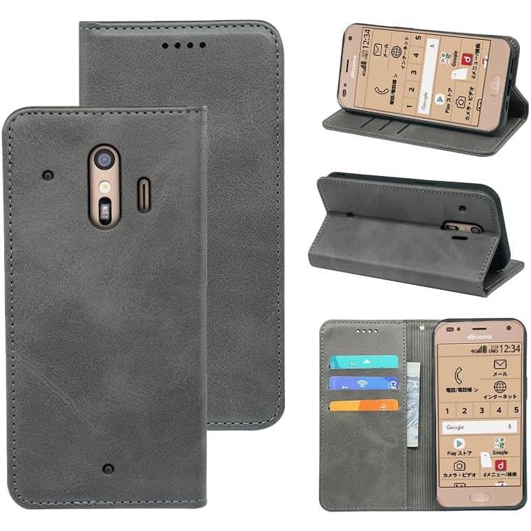 > ライトグレー 適用 らくらくスマートフォン me F-01L / F-42A ケース 手帳型 カバー PUレザー カード収納 財布型 耐衝撃 ケース マグネット