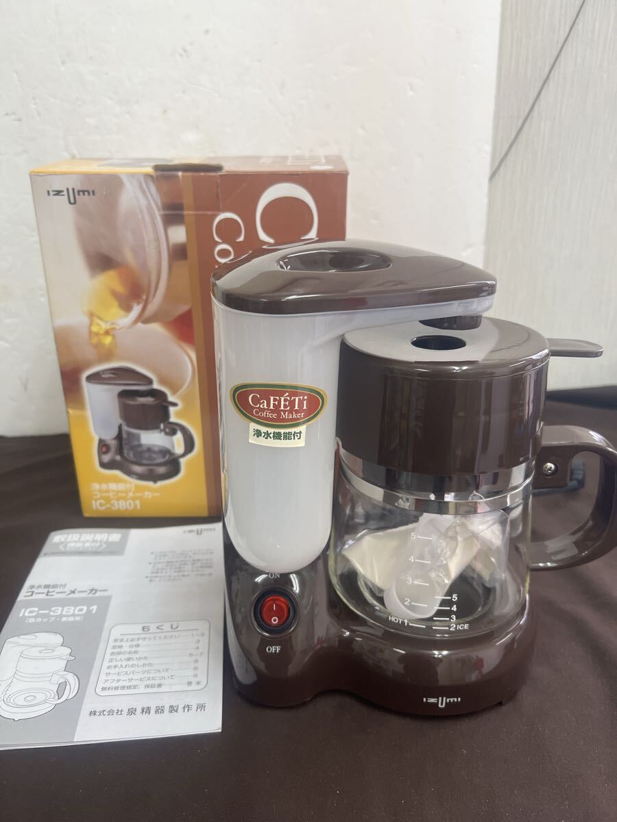 - 【ヤ80】新品未使用 コーヒーメーカー 浄水機能付 IC-3801 IZUMI CaFE'Ti 5カップ 675ml 計量スプーン 紙フィルター付 泉精器製作所