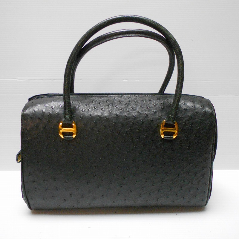- 932957 JARDIN DES SACS ジャルダンデサック 黒 オーストリッチ ハンドバック