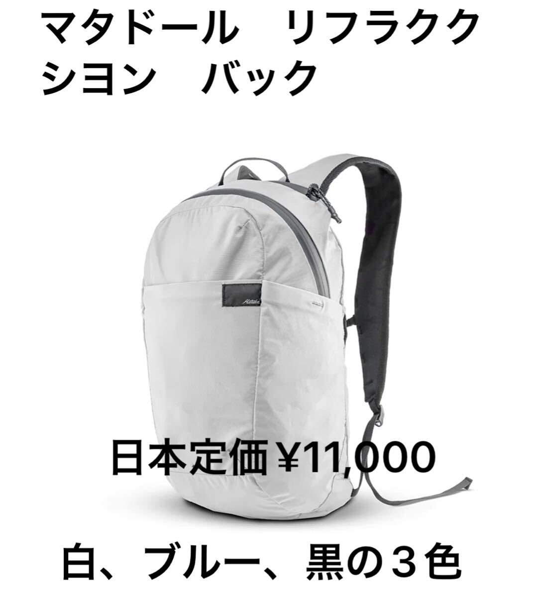 - マタドール リフラククシヨン バック 黒、白 ブルー の3色。新品米国正規品 日本定価¥11,000-