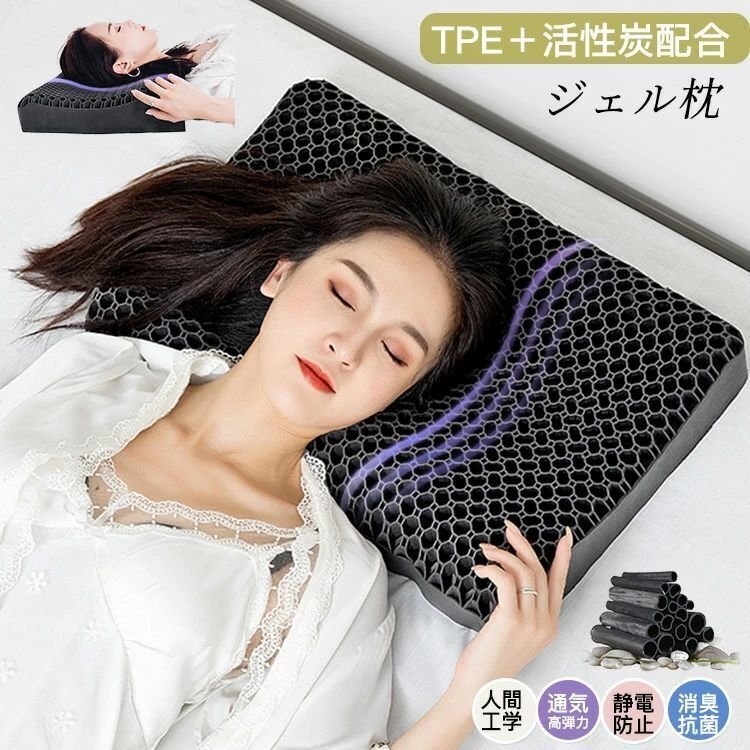 - 枕 通気性 抜群 横向き寝用枕 うつぶせ寝 柔らかい ジェル 首 寝返り 高弾力マクラ 肩こり 首こり 低反発まくら 体圧分散 TPEまくら