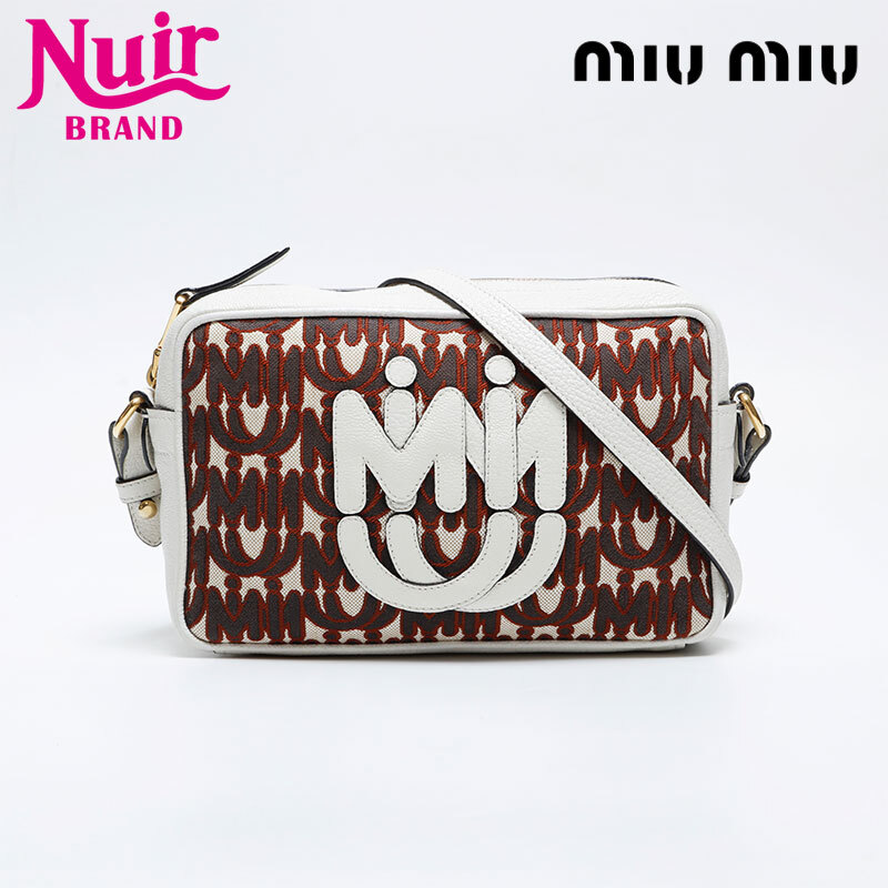 - ミュウ ミュウ Miu Miu ショルダーバッグ ロゴ ジャガード カメラバッグ ホワイト