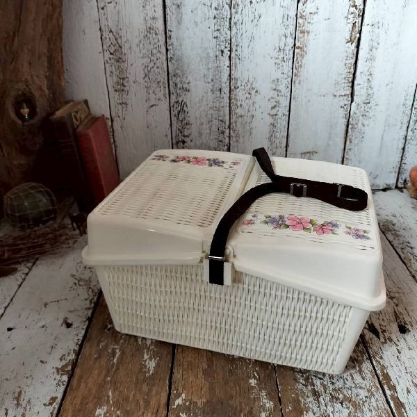 - ヴィンテージ レトロポップ プラスチック ピクニック バスケット かご カゴ 収納 ボックス コンテナ ビンテージ アンティーク 古道具