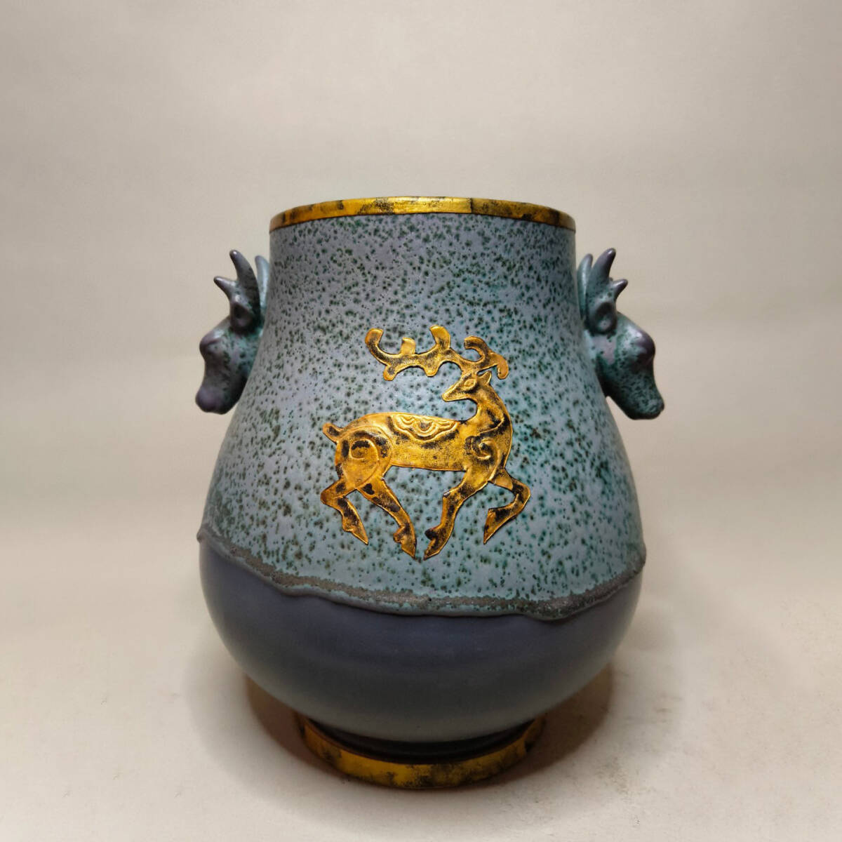 > 8+GV7416「東洋美術」 中国骨董 人間国宝 磁器製品【鹿頭尊】 旧物 孤品 珍品 陶磁器 収蔵価値が高い