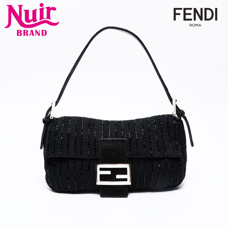 - フェンディ FENDI ショルダーバッグ ハラコ マンマバケット ビーズ ブラック