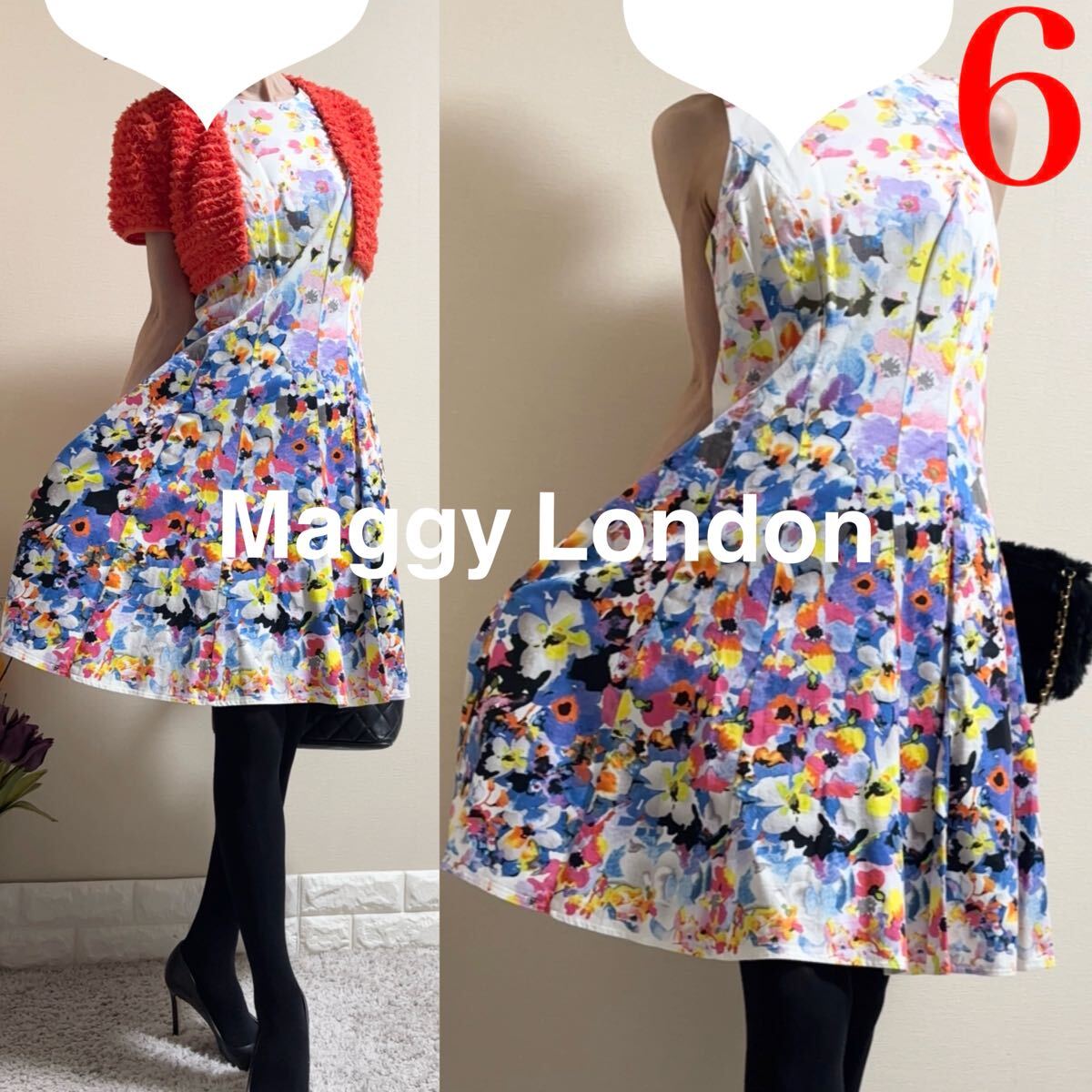 - Maggy London マギーロンドン 手描き 花柄 ワンピース 6 ML 白