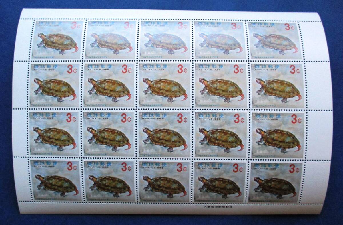 > 沖縄切手・琉球切手 カメシリーズ リュウキュウヤマガメ 3¢切手 20面シート 141 ほぼ美品です。