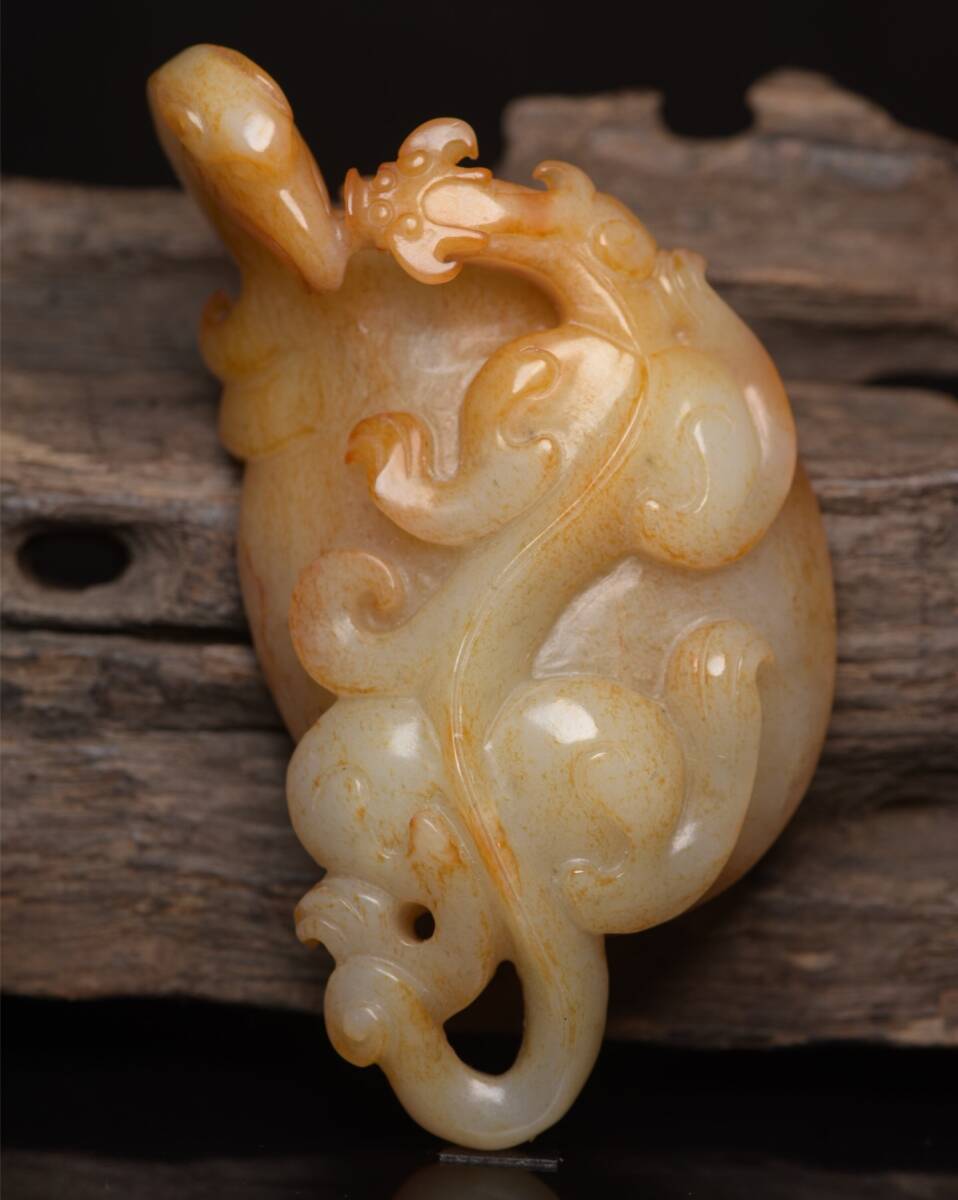 - 『館蔵珍品 和田玉製 細密彫 龍鳳帶勾 置物 賞物』稀少珍蔵品 古賞物 貴重物品 収蔵品 中国古美術 時代物 古董品