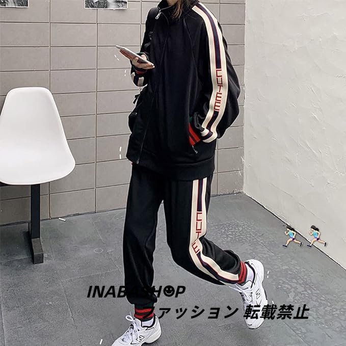 - 春秋 2点セット ジャージ レディース 上下セットアップ スウェット パーカー スエット カジュアル スポーツウェア 韓国風 大きいサイズ
