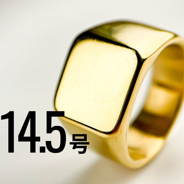 - J035-2 ステンレス印台リング 14.5号 ゴールド