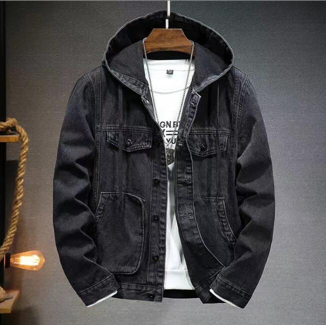 - 新入荷デニムジャケット メンズ高級 ジージャン パーカ フード付きゆったり紳士トップス アウター ワークジャケットおしゃれ 黒 2色 M~3XL