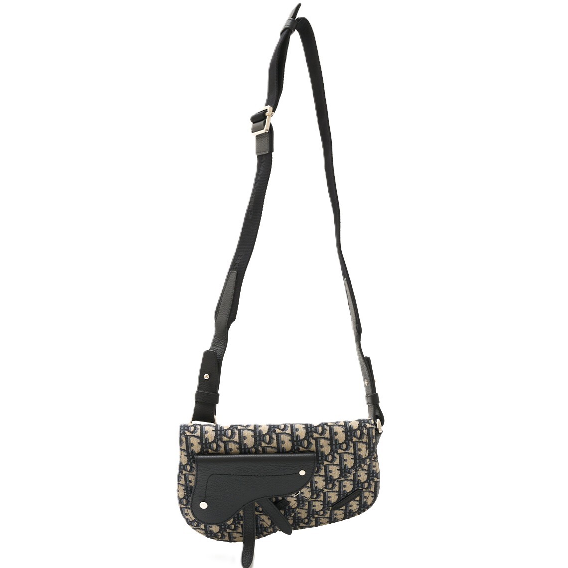 > CHRISTIAN DIOR クリスチャンディオール トロッター サドル ボディバッグ ショルダーBAG ジャガード×レザー ブルー×ブラック レディース