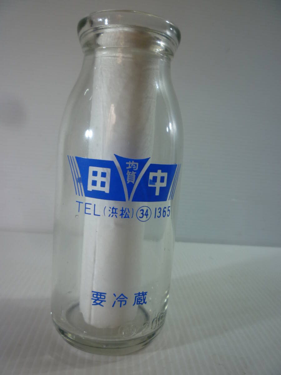 - 田中牛乳 静岡 浜松 古い 牛乳瓶/空ビン ミルク瓶/昭和レトロ ミルク インテリア ディスプレイ カフェ ガラス瓶