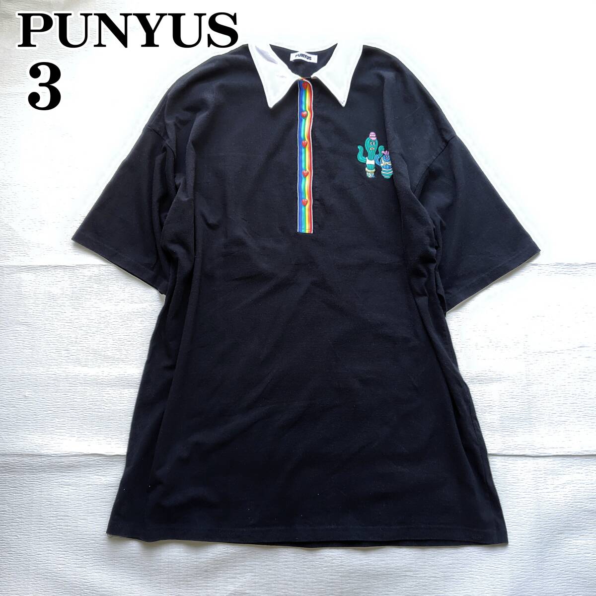 > PUNYUS プニュズ 半袖ビッグポロシャツ ポロワンピ レインボー サボテン レディース トップス 黒 250821-03