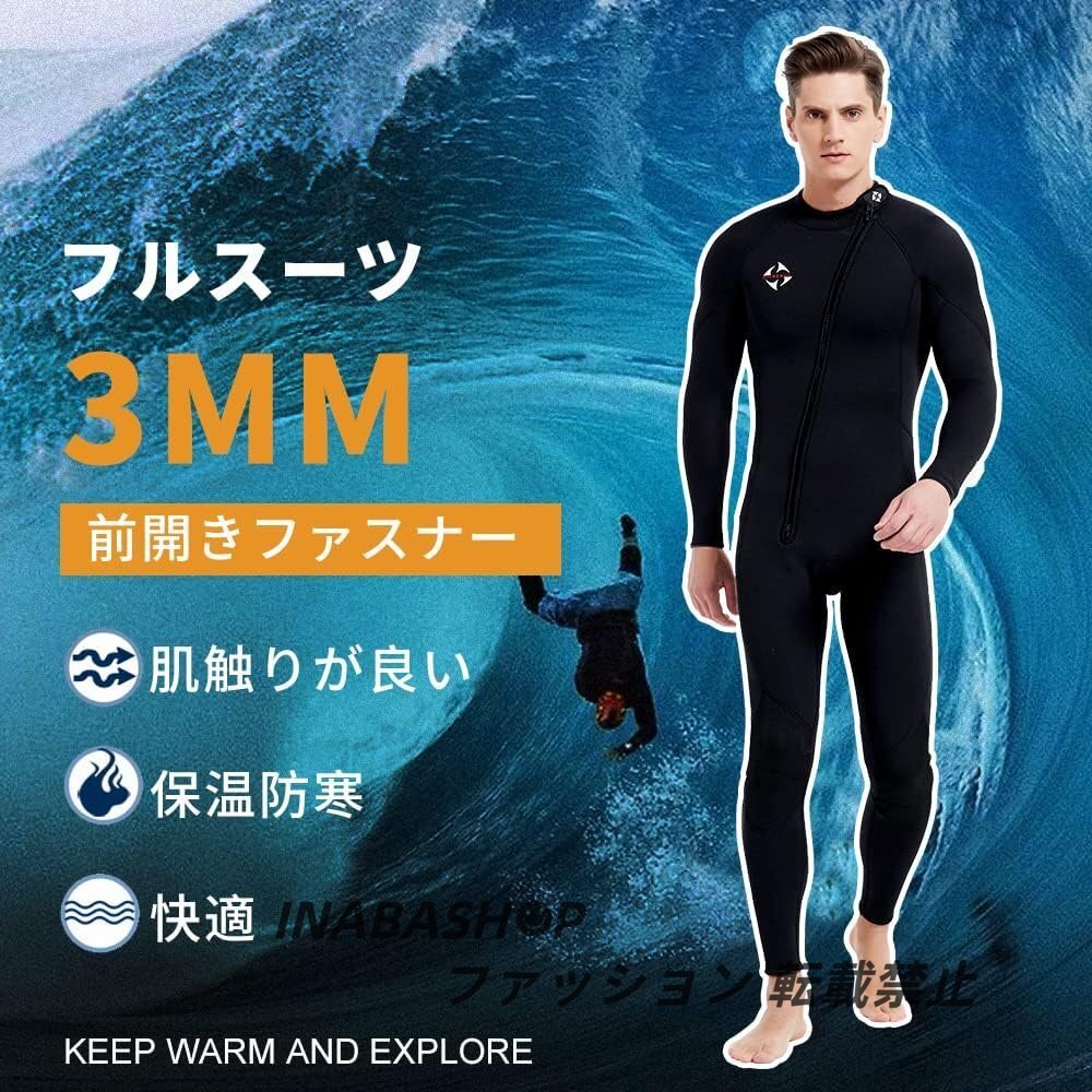 - ウェットスーツ メンズ フルスーツ スプリング 胸部スキン 前ファスナー3mm ワンピース M-3XL