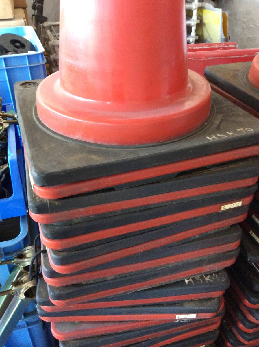 - 【中古】三角コーン 赤 5本 まとめ売り 高さ約70㎝ コーンベット付き 傷あり 削れあり 各種工事 清掃作業時 安全区画 ホテル 駐車場