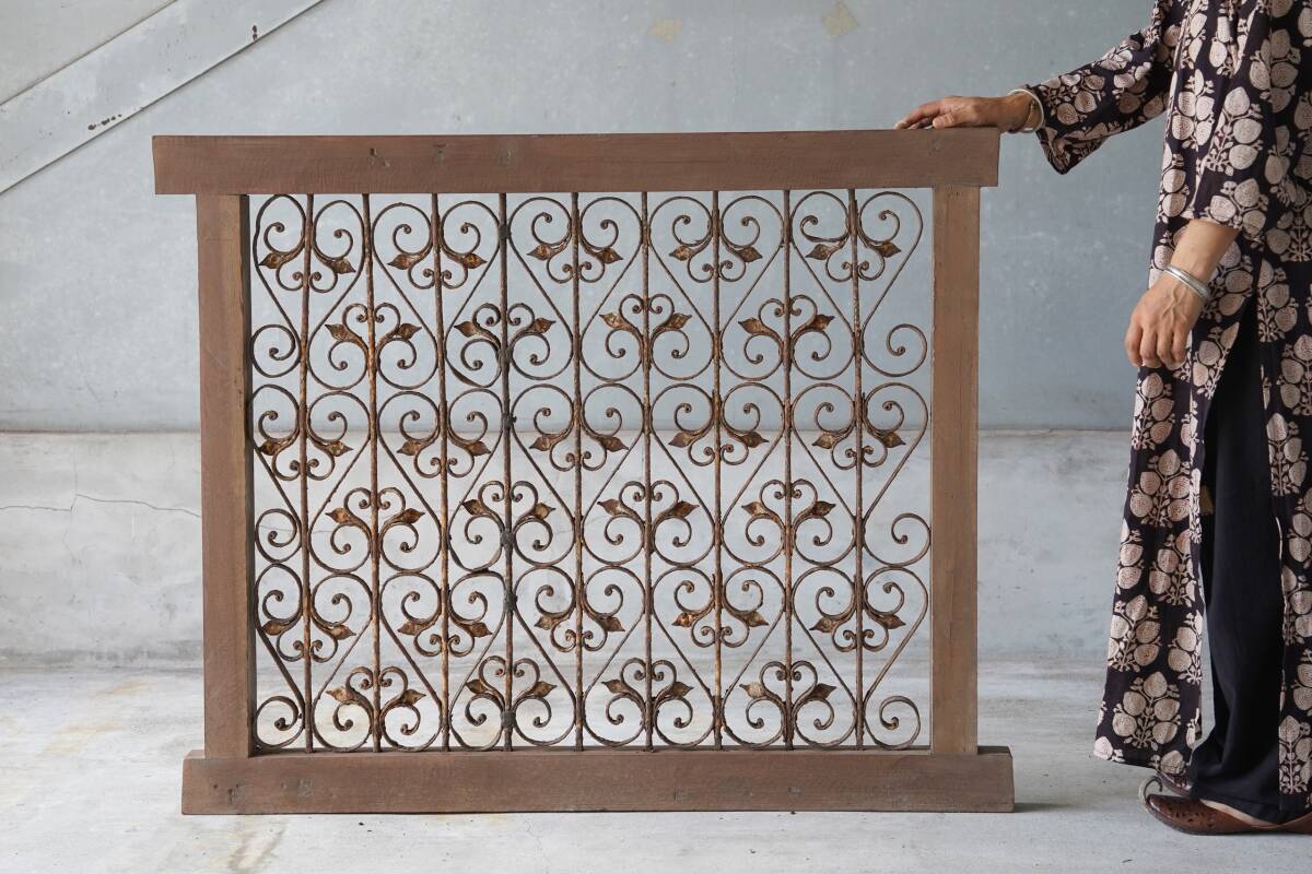 - チーク材 古材 アイアンフレーム フレーム 建具 窓 アンティークドア DIY インテリア ディスプレイ パーテーション 古道具 オブジェ ②