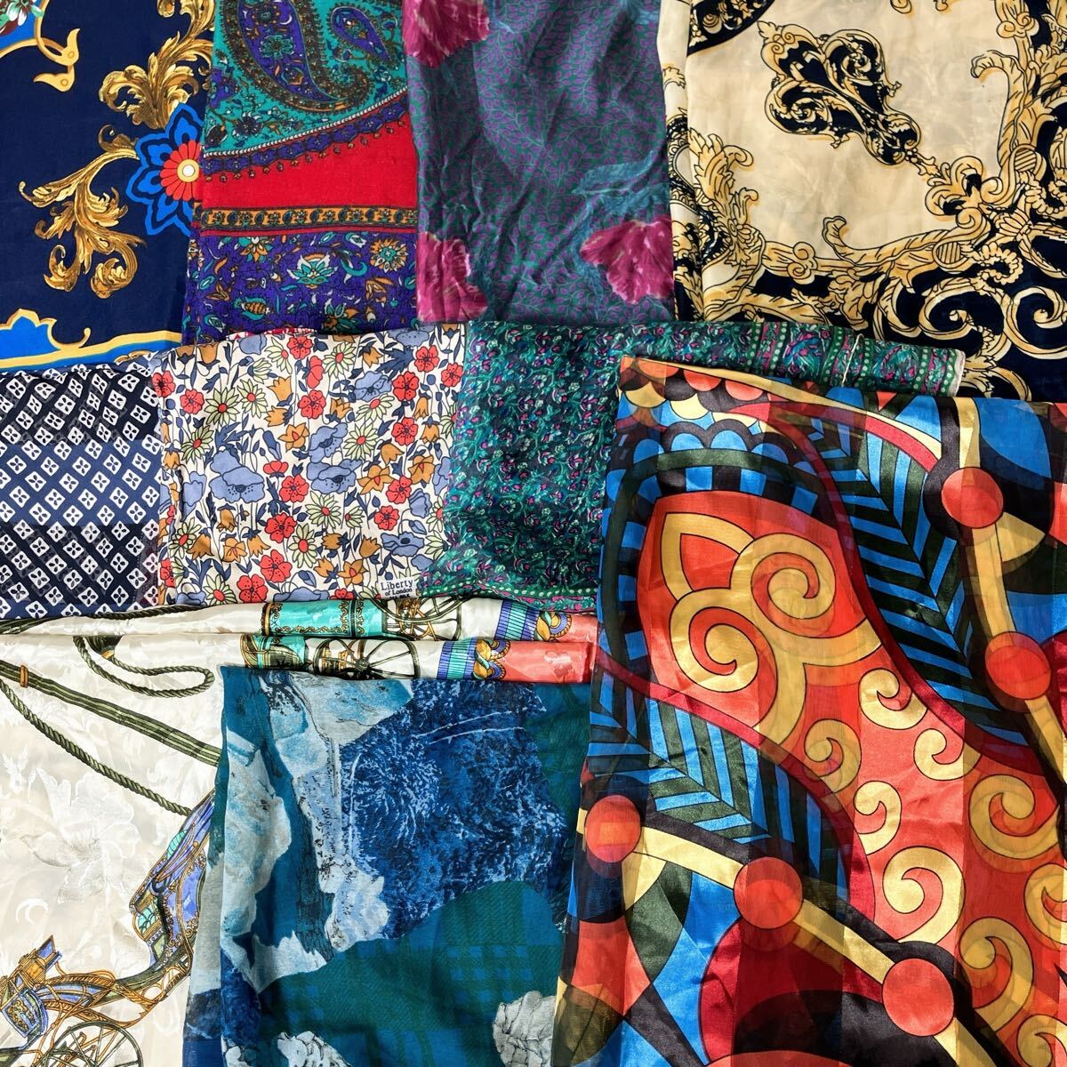 > スカーフ 10枚セット 大判スカーフ 小サイズ サイズ様々 デザインmix カラーmix US古着 小物アクセント 送料無料 花柄 総柄 マルチカラー
