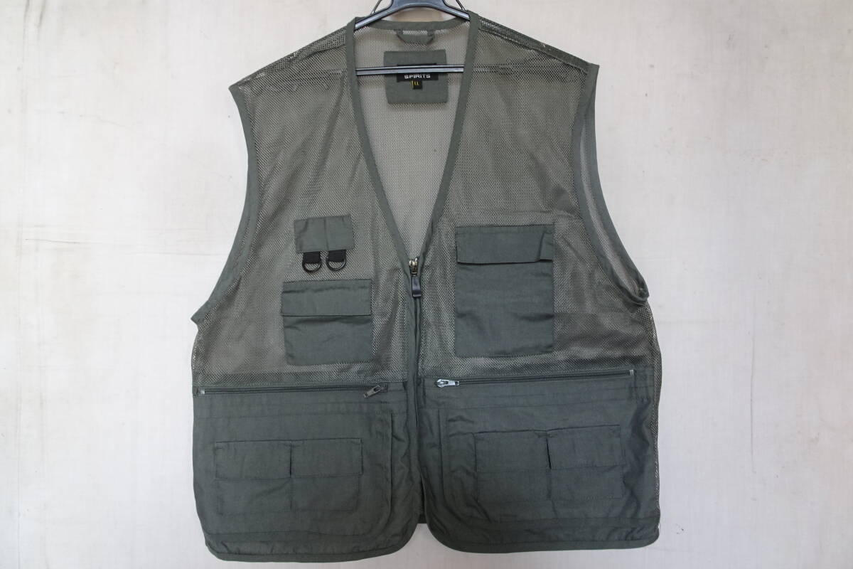 - RUCK DAM SPIRITS/アウトドアベスト/メッシュ素材/通気性/Vネック/前ジップアップ/多機能ポケット/グレー/LLサイズ(8/29R7)
