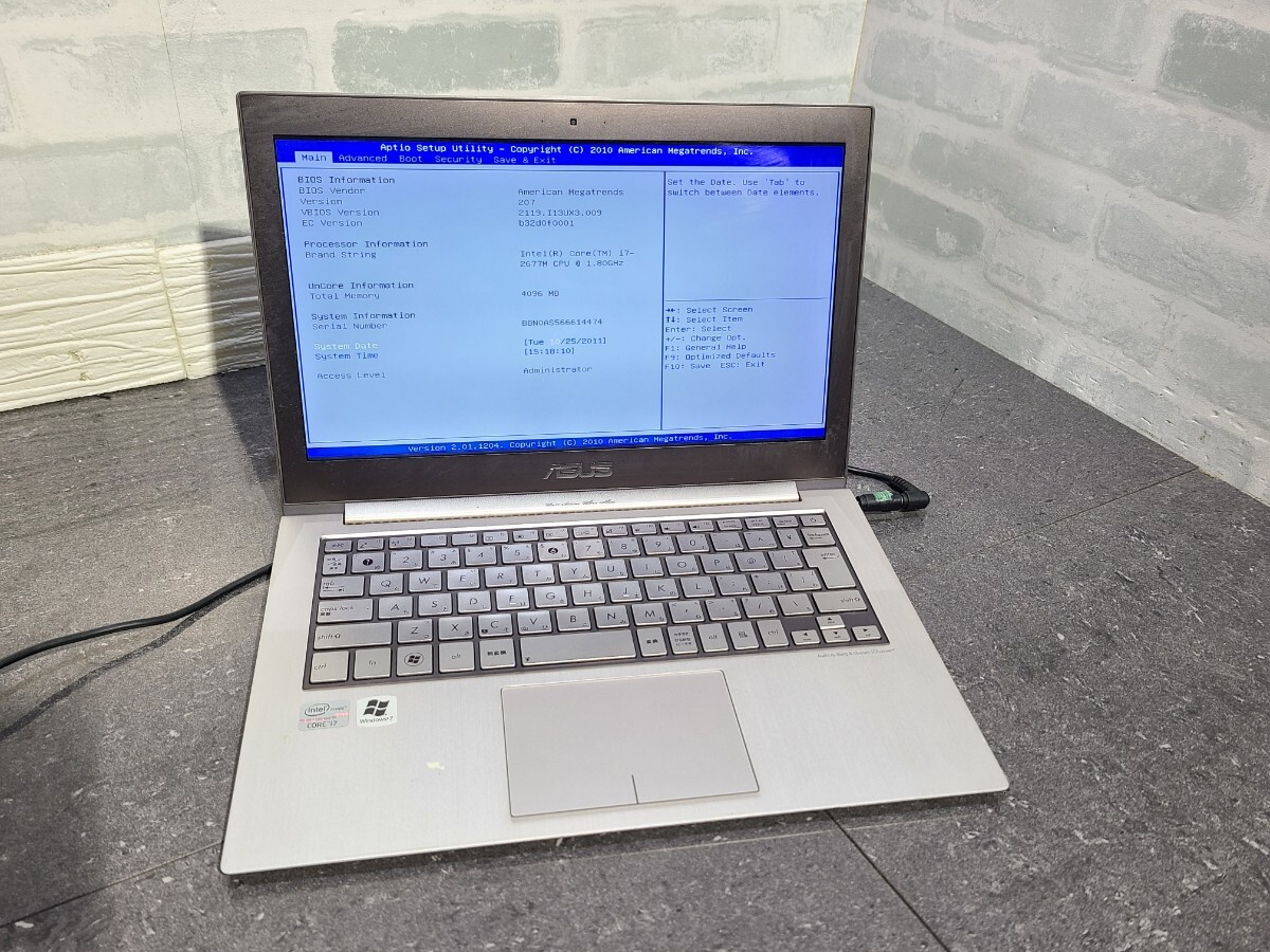 - 【現状品】管2S110 ASUS UX31E Notebook PC CPU core i7-2677M Bios起動OK SSD無し、メモリー4GB、バッテリー有り