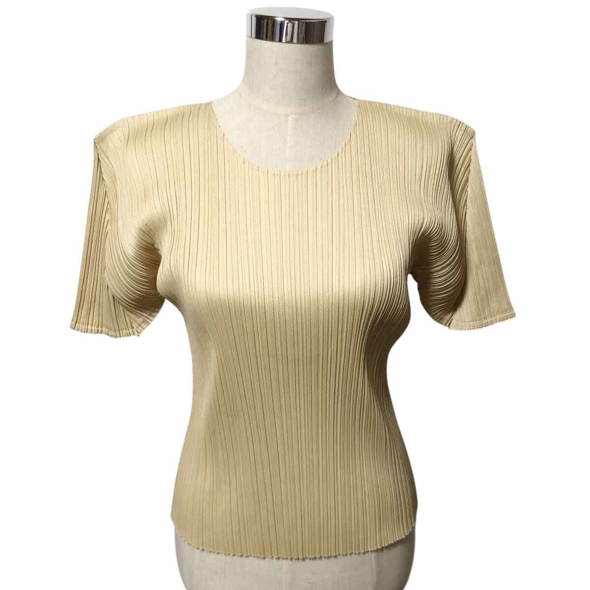 - PLEATS PLEASE プリーツプリーズ プリーツ カットソー 半袖 変形 3 ベージュ 日本製 イッセイミヤケ レディース A19