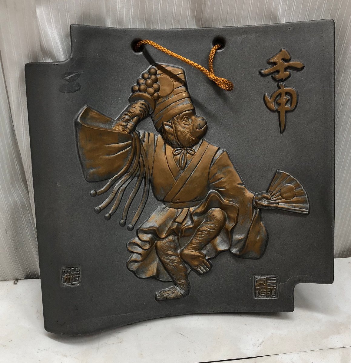 - $M$ 干支古代瓦 壬申 みずのえさる 六十干支 猿 オブジェ 額瓦 縁起物 A2508-010