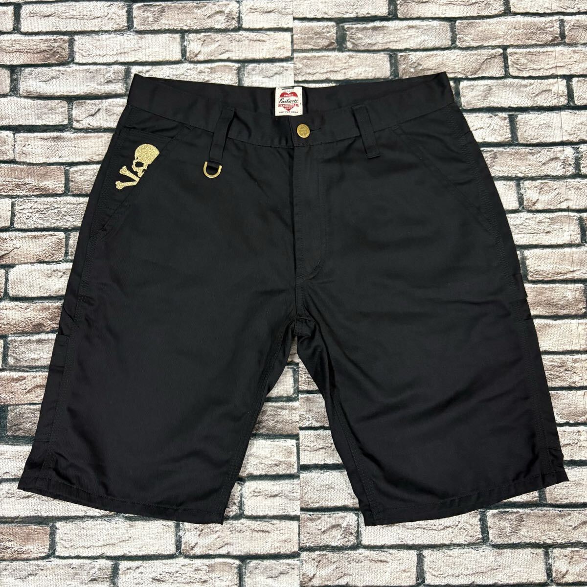 > 極美品★MASTERMIND×carhartt マスターマインド×カーハート★金糸スカル刺繍ハートタグペインターショーツ ハーフパンツ