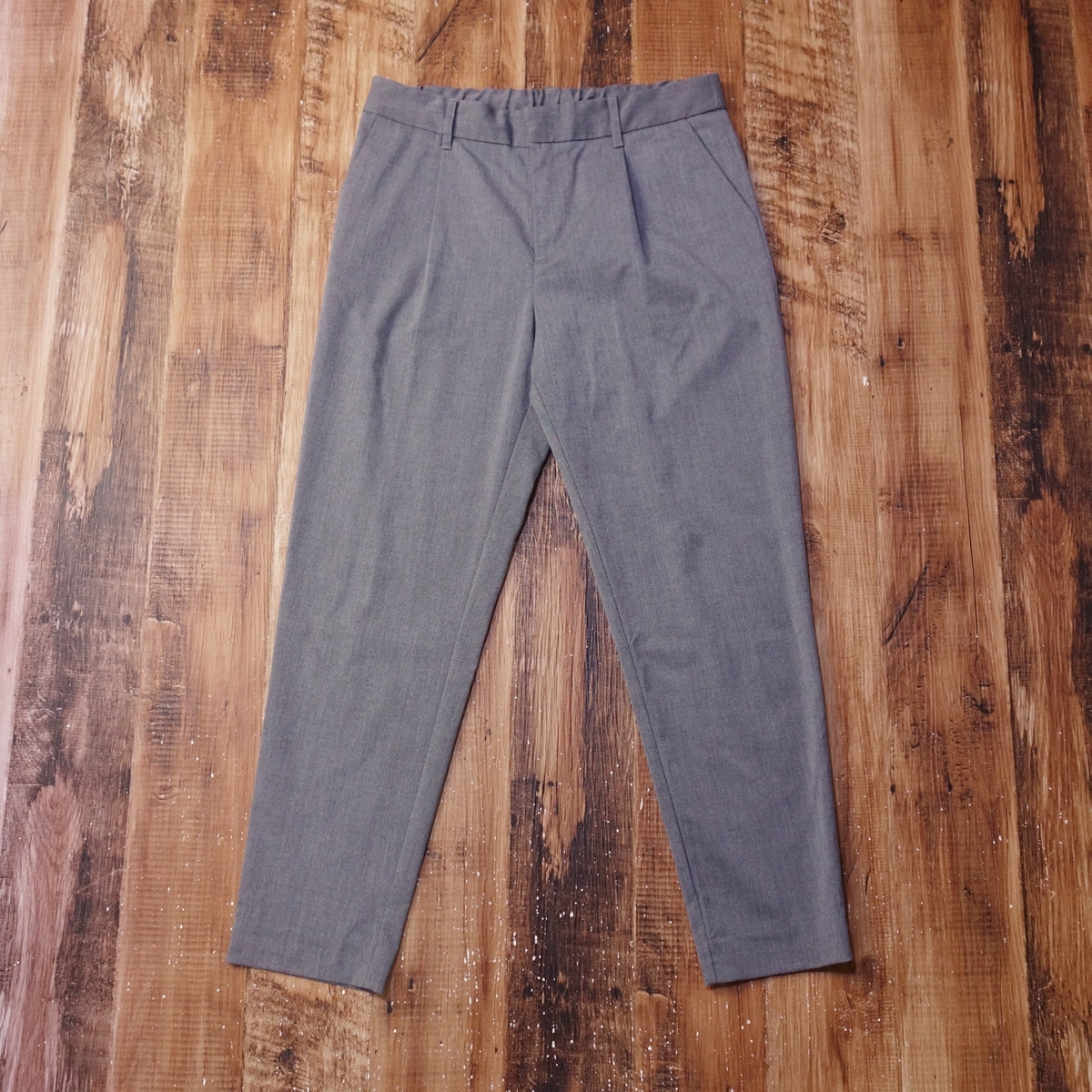 > 美品 無印良品 MUJI テーパードイージーパンツ レディース オフィス きれいめ ウエストゴム Mサイズ グレー QF9