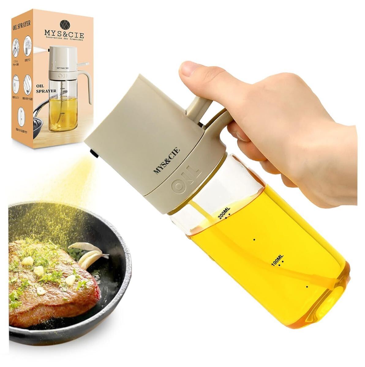 - K オイルスプレー 目盛り付き 250ml 霧吹きボトル オリーブオイル対応 耐熱ガラス製 液だれしない 調味料入れ 料理用 スプレータイプ