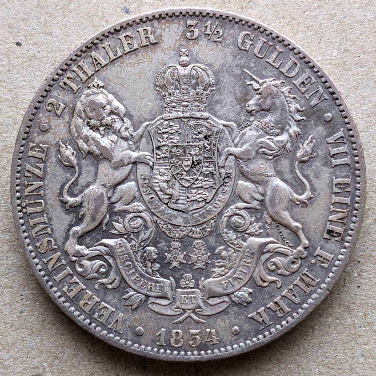 - 1854年 ドイツ ハノーファー ゲオルグ5世 2ターラー 銀貨 ハノーファーミント VF
