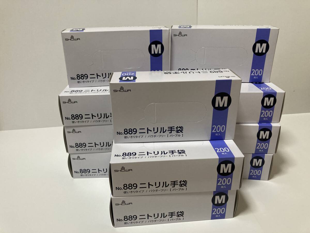 - 未開封 ショーワグローブ ニトリル手袋 №889 パープル Mサイズ 200枚入 11箱 使いきりタイプ パウダーフリー 一般作業用 極薄 使い捨て