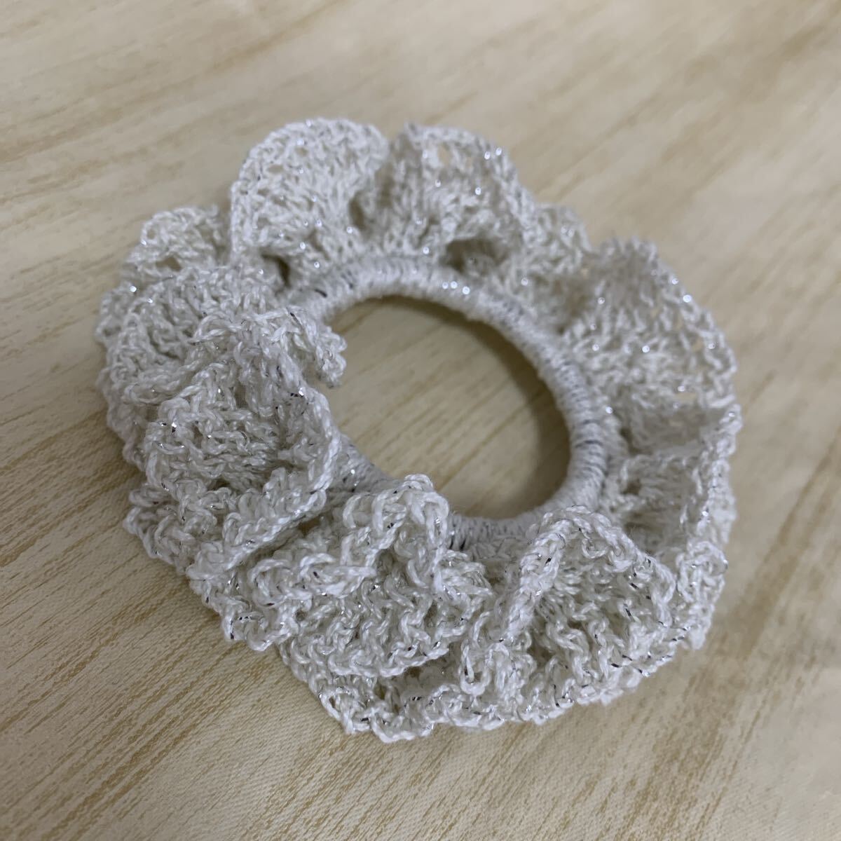 - 【d14】かぎ針 シルバーラメ ホワイト レース糸 フリル シュシュ
