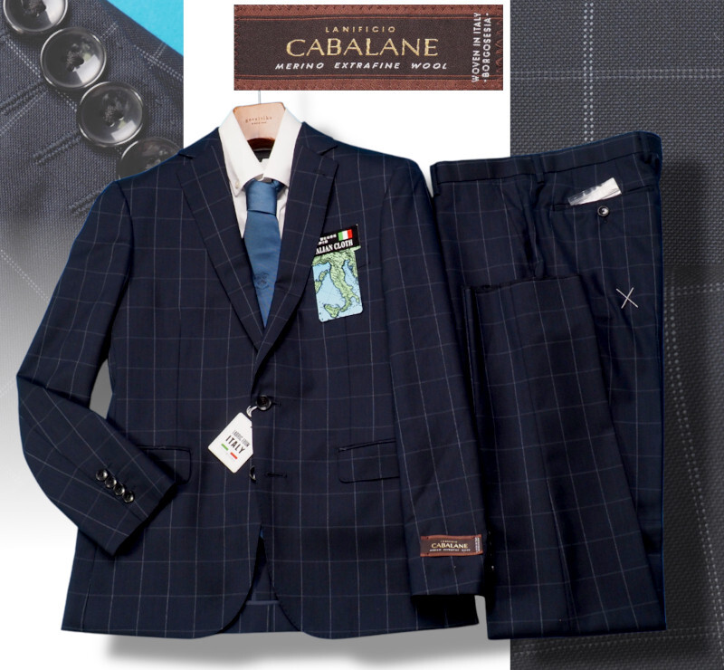 - 新品8.6万円 大手百貨店扱い 春夏『CABALANE カバラーネ 伊製生地』ウール100% ウインドペン スーツAB6紺(B) 1635481