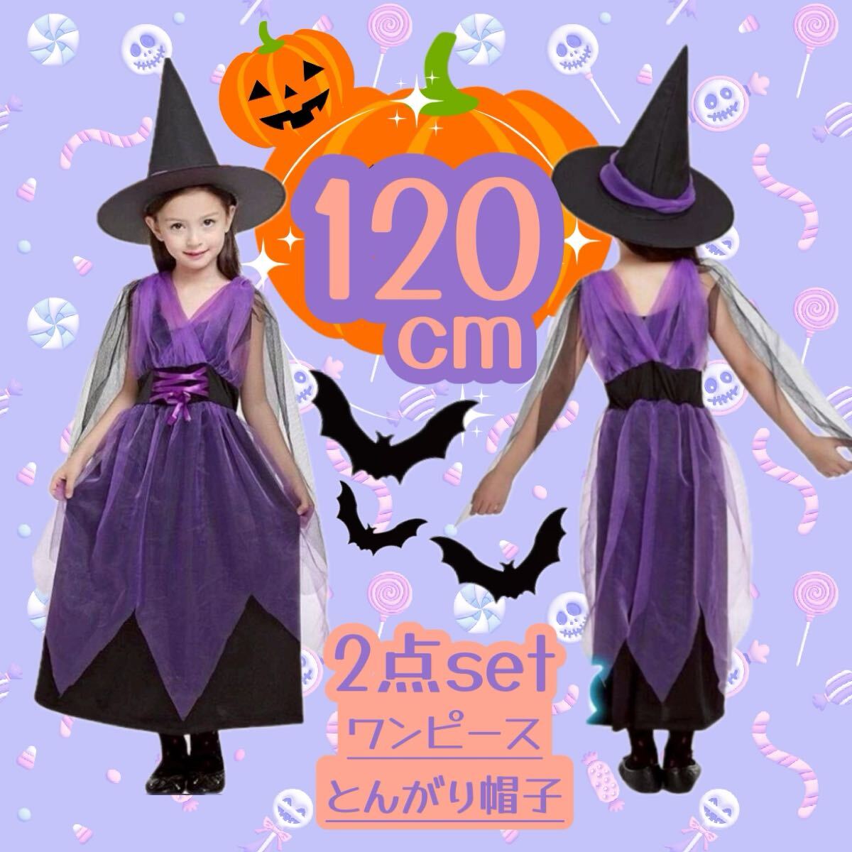 - 魔法使い コスプレ 120cm 2点 ワンピース 帽子 ハロウィン パープル