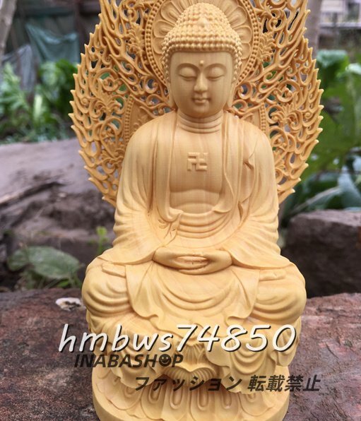 - 仏教美術 釈迦如来 坐像 仏像 彫刻 自然木 職人 手作り 置物 美術品 東洋彫刻 高さ18cm