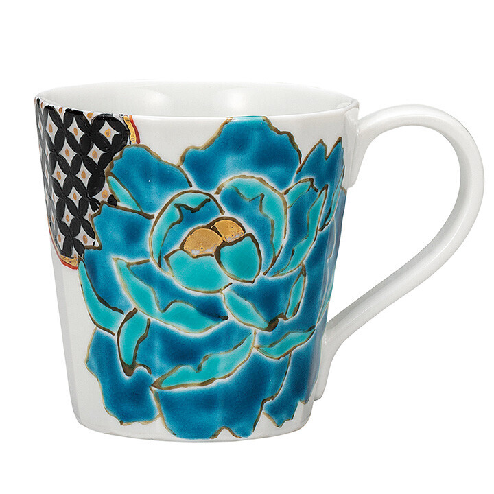 - 九谷焼! 佐藤剛志 ☆碧牡丹マグカップ☆ K9-992 新品 茶器 コーヒー 紅茶 ミルク ラテ エスプレッソ カプチーノ ギフト