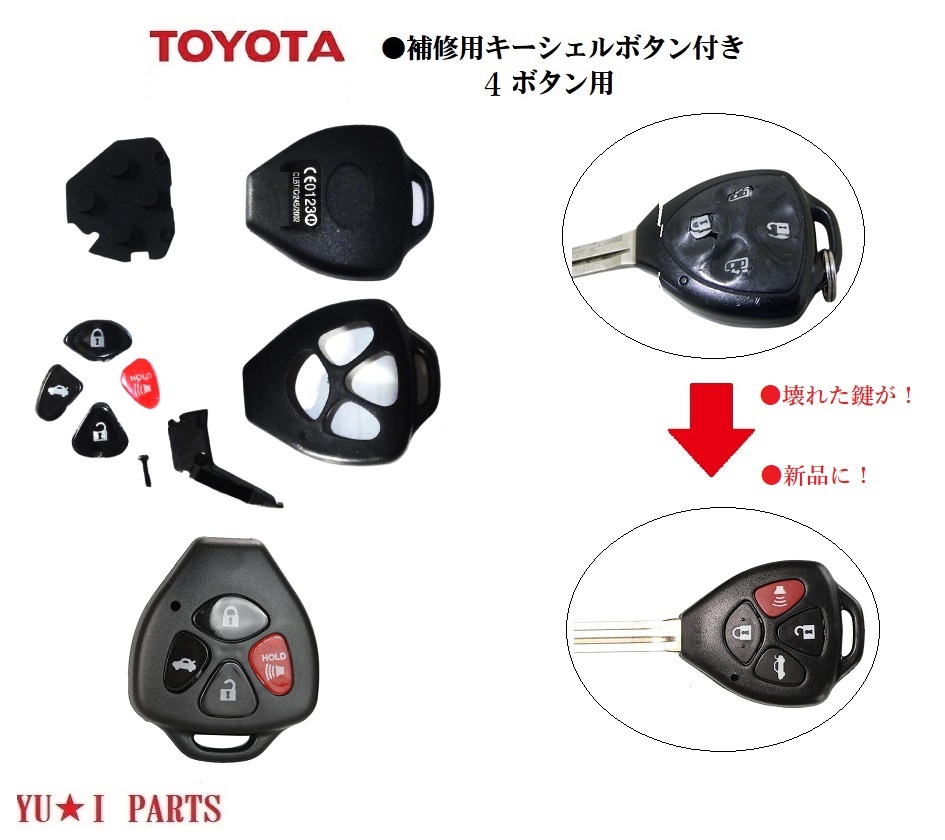 > ■トヨタ キー 補修キット4ボタン ブランクキー キー交換 キーレスキー RAV4 カローラフィールダー ポルテ ウイッシュ ヴィッツ アイシス