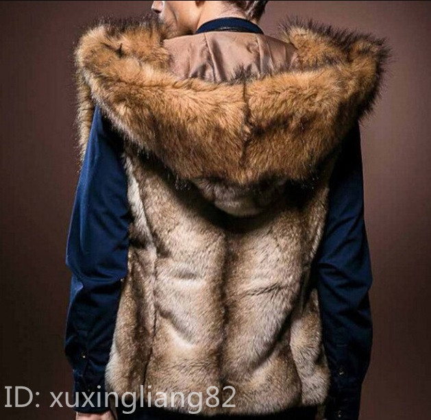 - 新品 ファーベスト メンズ 毛皮 ベスト ゆったり 厚手 紳士 アウター カジュアル 防寒 暖か 冬用 パーカ /L