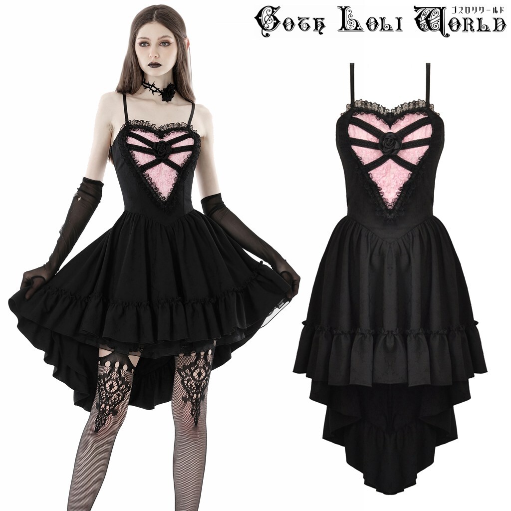 > SALE DW790-M ローズハートフィッシュテール柄入り ジャンパースカート ゴスロリワールド ゴシック パンク ロック ロリィタ V系