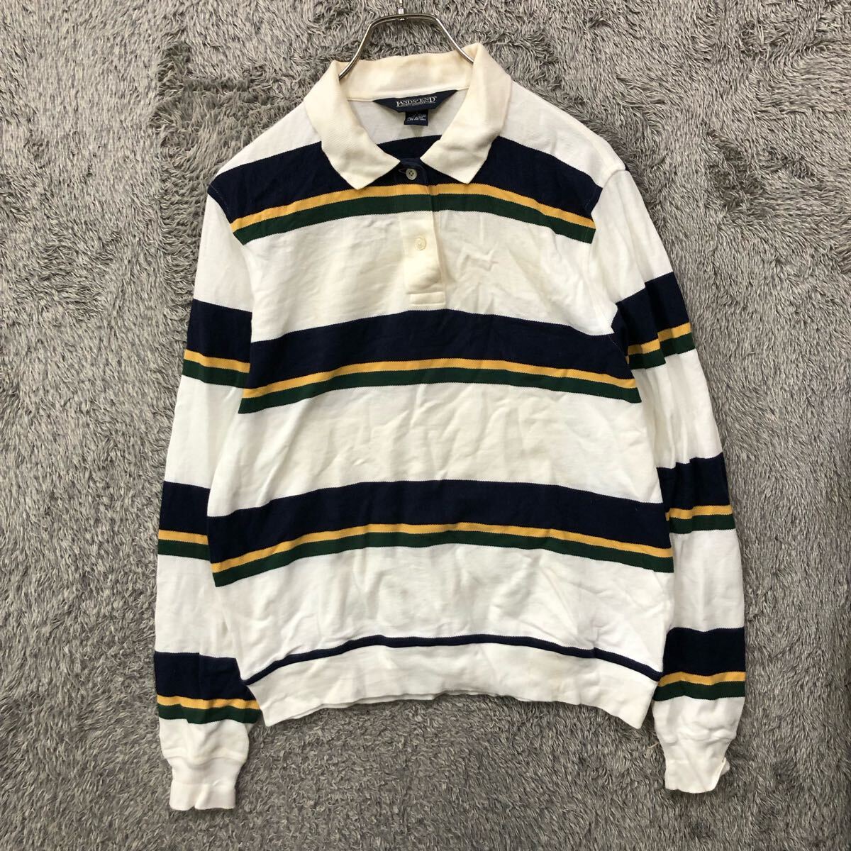 - LANDS' END ランズエンド 長袖ポロシャツ 長袖シャツ 鹿の子 サイズM ホワイト 白 ボーダー メンズ トップス 最落なし(691)