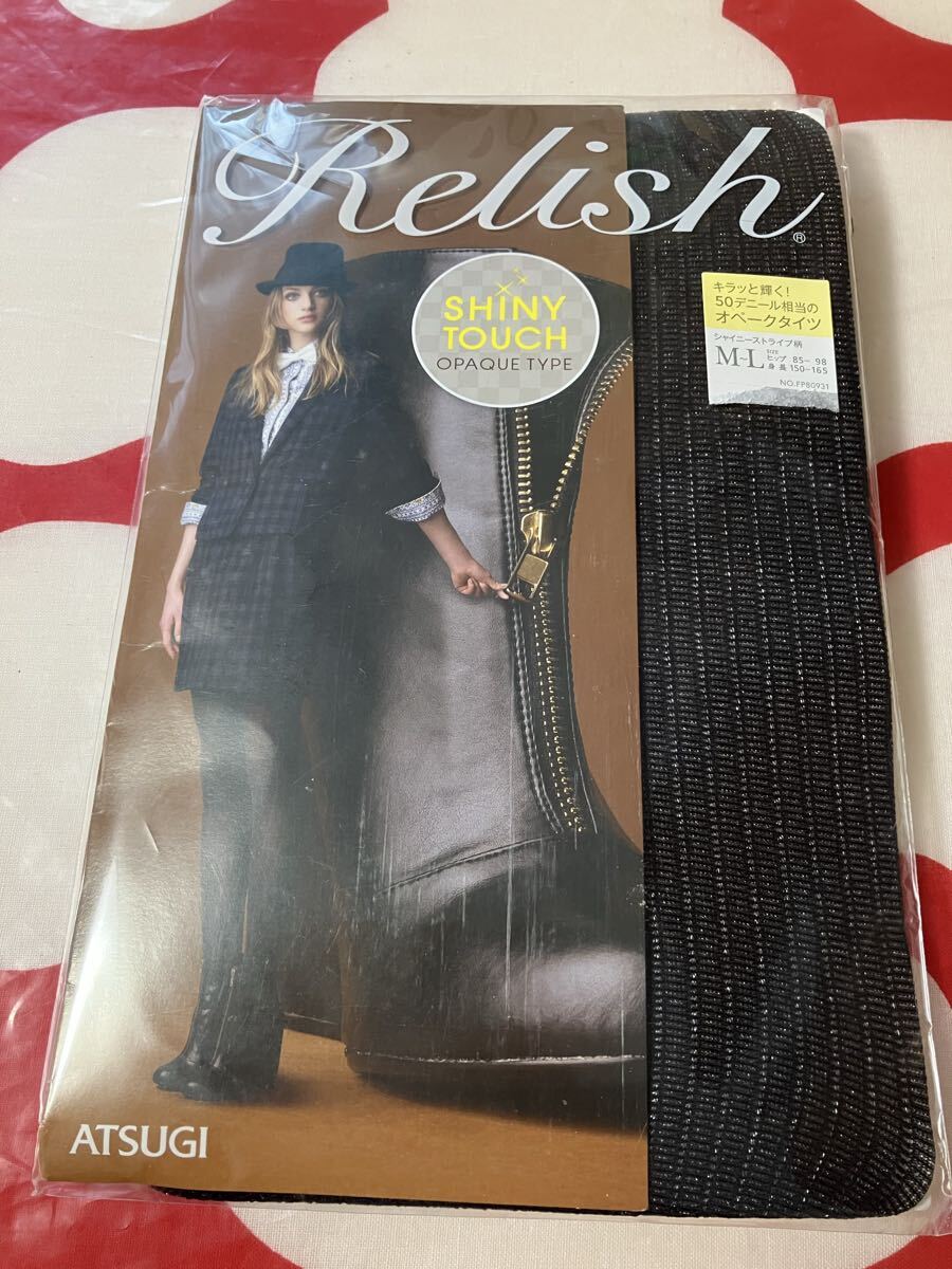 - atsugi relish 50デニール オペーク タイツ シャイニーストライプ柄 M-L ブラック あったか シック 光沢 輝く アツギ レリッシュ tights
