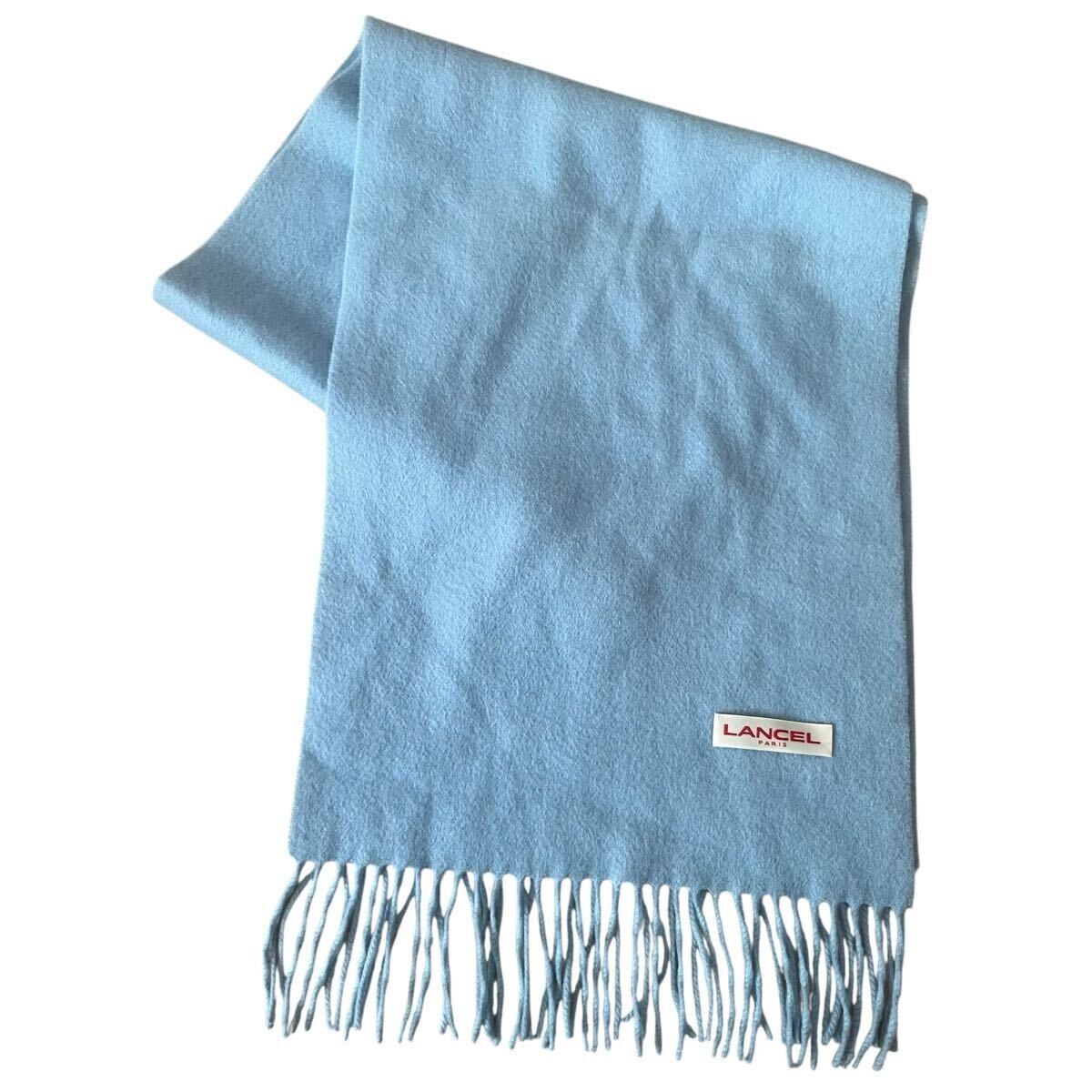 - 良品◎LANCEL ランセル マフラー カシミヤ スカイブルー 152×31cm