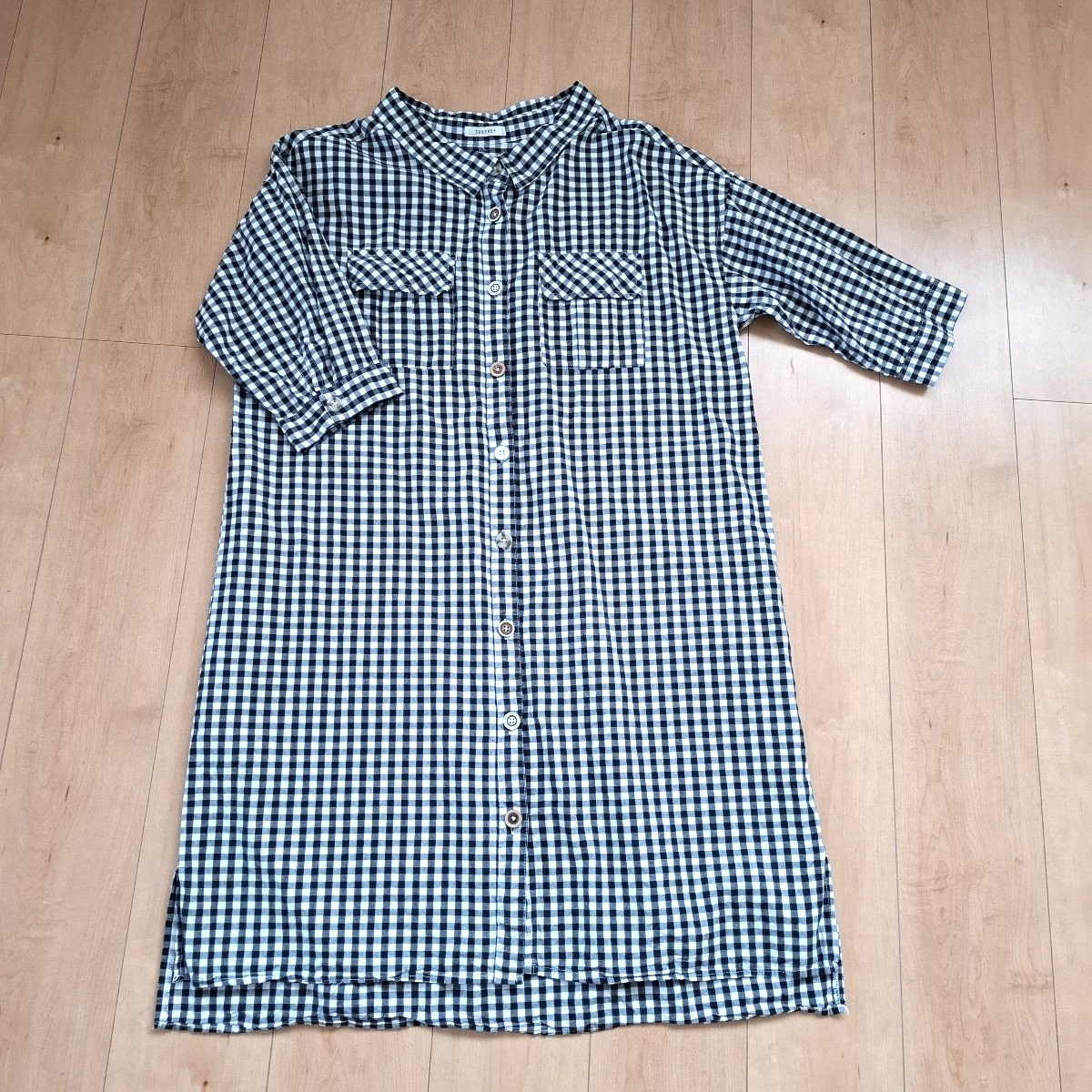 - かわいい☆チェック柄 5分袖 チェックシャツ☆上着 ブラウス シャツワンピ 羽織りもの ブラック×ホワイト 3L