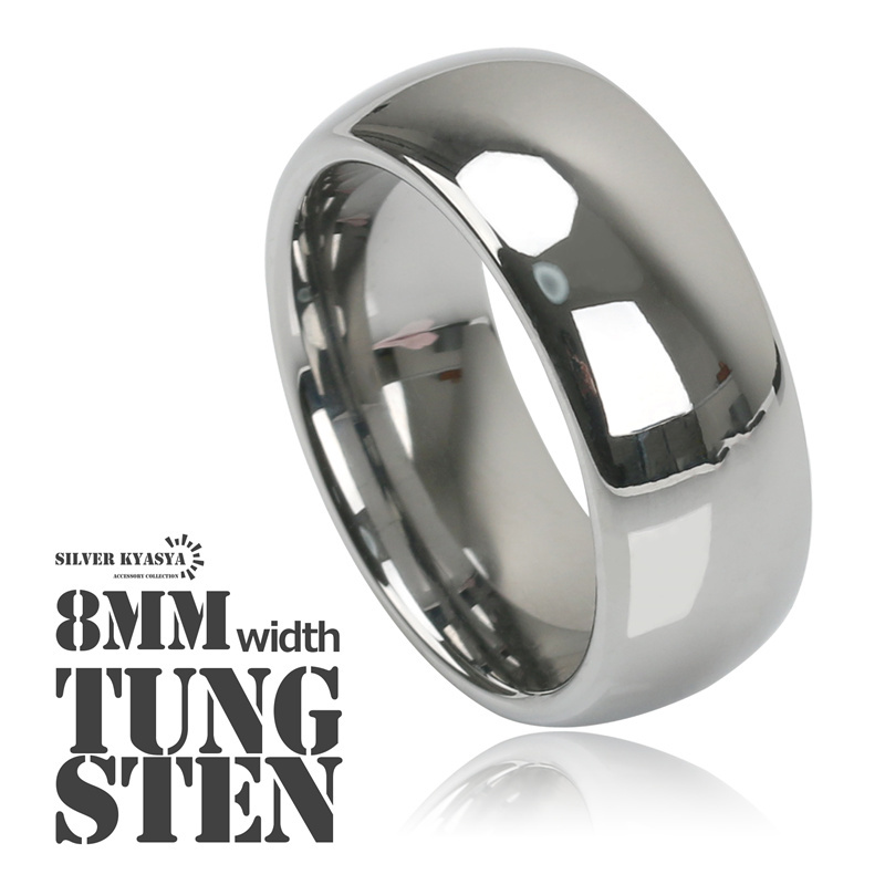- (17号) タングステン 甲丸リング 幅8mm ワイドリング シルバー ブラック 高耐久 頑丈 プレーン 専用BOX付属
