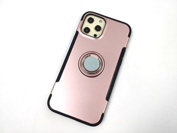 - iPhone 12 Pro Max用ケース 落下防止リング付き スタンド ソフトカバー ストラップ対応 ピンク