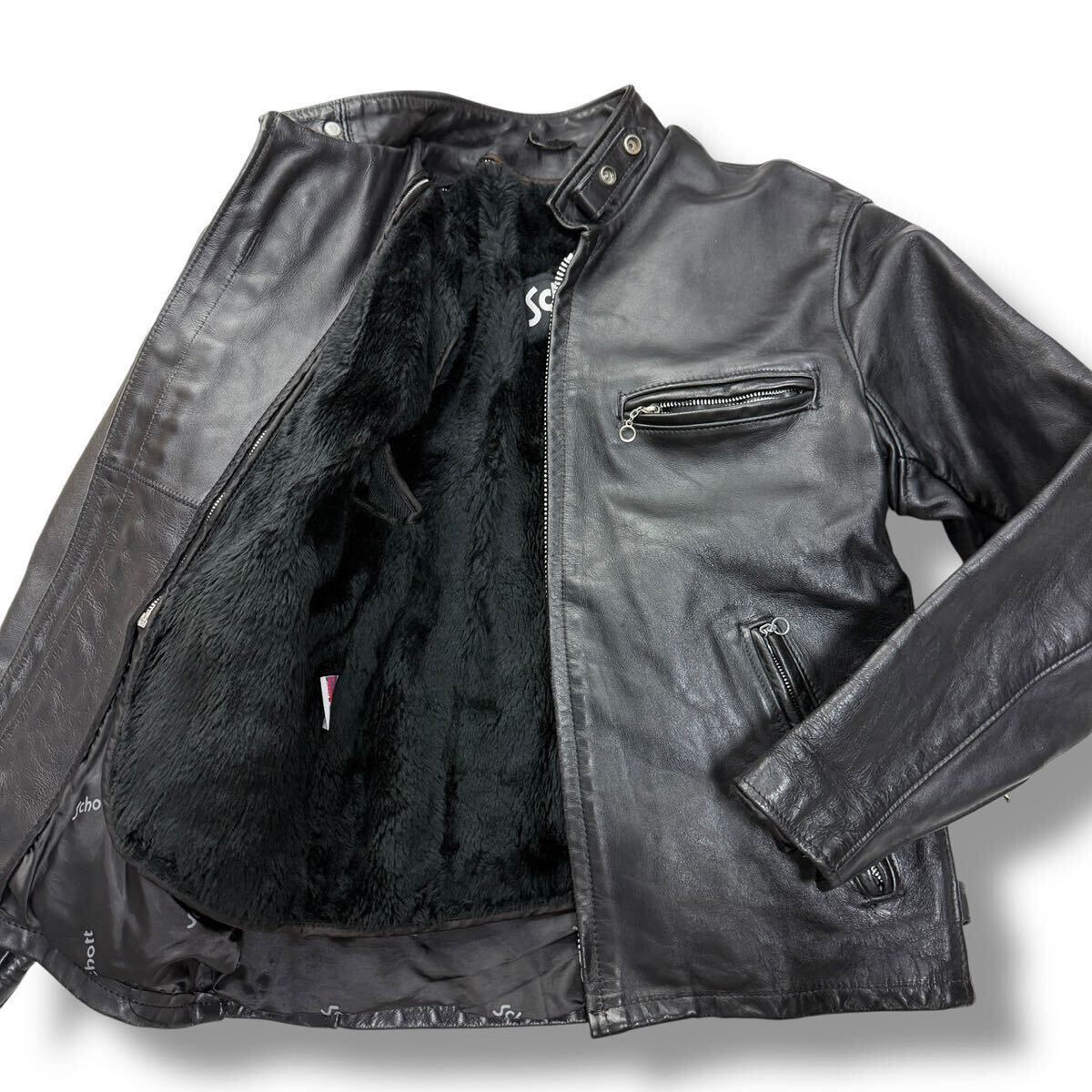 > 753 希少XL相当!!ショット 641 シングル ライダースジャケット レザージャケット 革ジャン 牛革 本革 40 Schott 黒 立ち襟 ボアライナー付