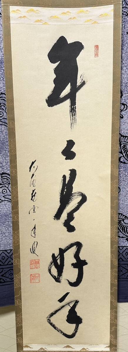 - 『真作』掛け軸【KJ16 前大徳寺 蔵雲寺 矢野一甫 矢野宗深 茶掛 年々是好年 紙本 肉筆 茶道具 書 画 江戸 明治 大正 昭和 時代物 美術 】