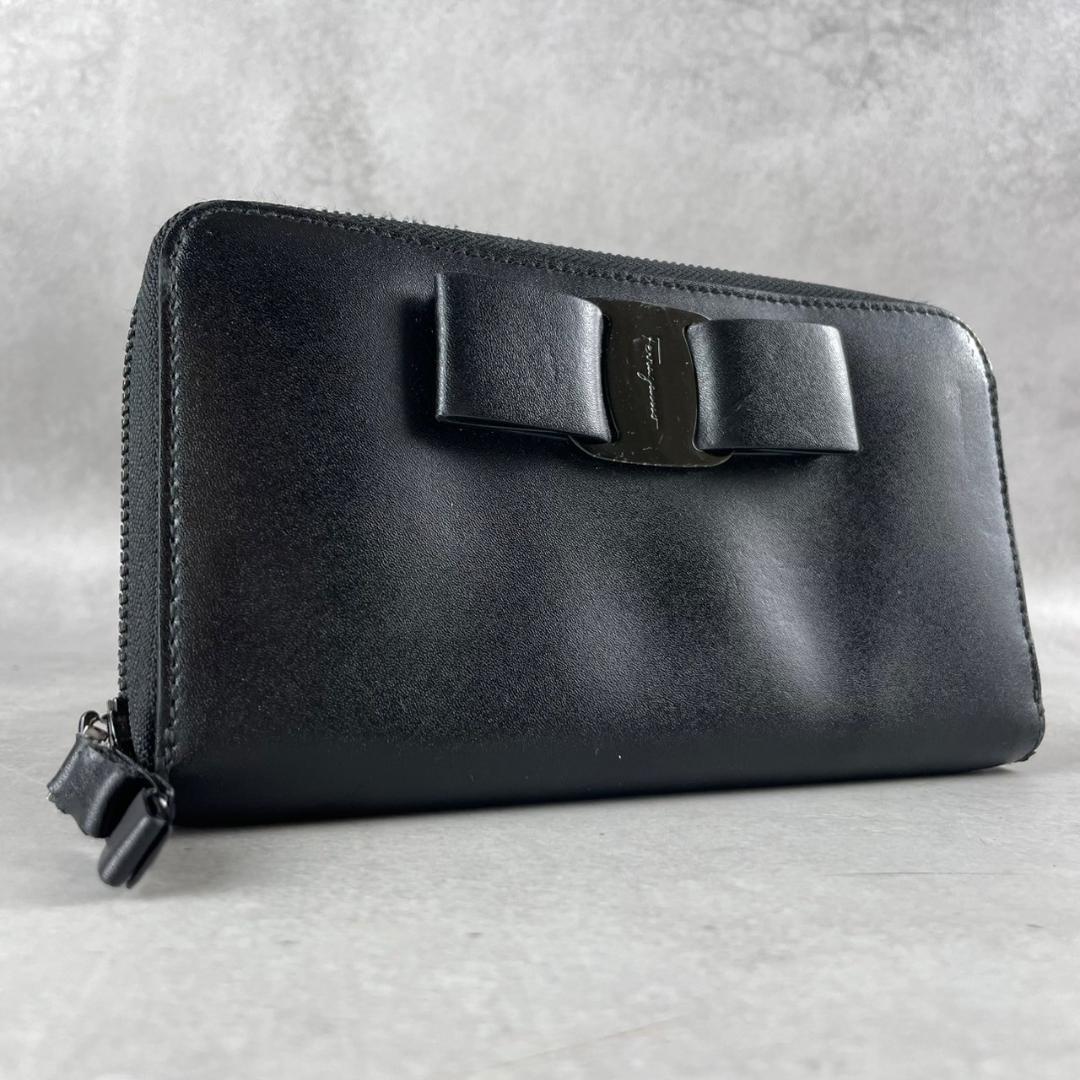 - 【美品/人気デザイン】Salvatore Ferragamo サルヴァトーレフェラガモ ヴァラリボン ロングウォレット ラウンドジップ 黒 長財布 ブラック